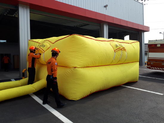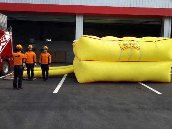 공기안전매트는 재난 발생 시 요구조자가 건물 내부에서 외부로 뛰어내릴 때 충격을 흡수해 안전하게 지상에 도달할 수 있도록 하는 구조장비이다. 화재진압대원, 구조대원, 운전원 등 15여명이 참여한 가운데 신속한 공기안전매트 전개에 중점을 둔 장비조작 훈련과 공기안전매트 주요 구성품 정기점검 등을 실시했다. 장성소방서 119구조대장(지방소방경 민종택)은 공기안전매트는 “긴급한 현장상황에서 신속하게 사용되는 장비로 평소 숙달훈련을 통해 인명구조 활동에 최선을 다하겠다"고 말했다.