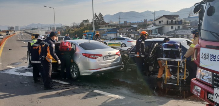 [장성타임뉴스 = 김성주 기자] 장성소방서(서장 박동하) 119구조대는 9일 오전 08시 47분경 장성읍 월산교차로에서 발생한 차대차 교통사고 현장에 출동해 요구조자 5명을 안전하게 구조하여 병원으로 이송하였다.
