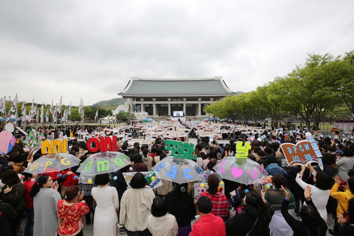 이 자리에는 IWPG 윤현숙 대표, (사)민족화해협력 국민협의회 송희성 상임고문, HWPL 이만희 대표, 국내 회원 및 해외 여성과 일반 시민 등 약 4500여 명이 참석했다.