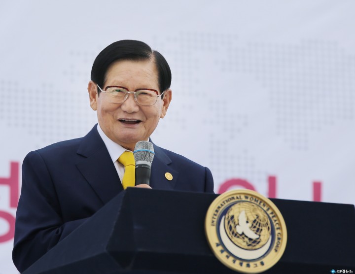 [충남타임뉴스=최선아 기자] 이만희 (사)하늘문화세계평화광복(HWPL)대표가 26일 독립기념관(충청남도 천안시 소재)에서 (사)세계여성평화그룹(IWPG, 대표 윤현숙)기 개최한 4월 26일 ‘세계 여성 평화의 날’로 제정·선포식에서 축사를 하고 있다.