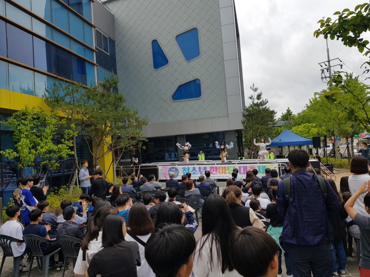 [문경타임뉴스=이언호기자]2019 문경시청소년어울림마당‘청소년 한마당 대축제’가 지난 5월 18일(토), 오후 2시 15분부터 4시 30분까지 청소년문화의집 일원에서 선문대응원단의 화려한 응원 댄스를 시작으로 청소년동아리공연, 체험부스, 길거리농구 등 다채롭게 진행되었다.