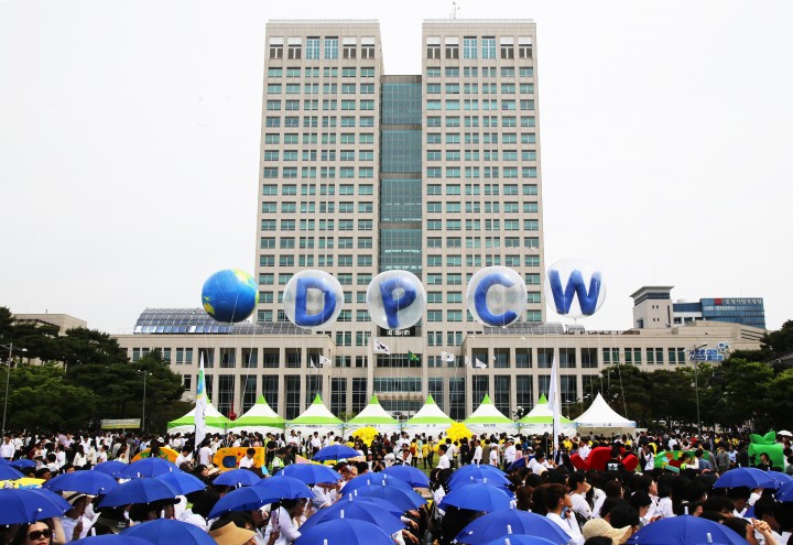 이날 열린 ‘세계평화선언문 제6주년 기념식 및 평화 걷기’ 행사는 UN 경제사회이사회와 글로벌소통국에 등록된 평화 NGO인 ㈔하늘문화세계평화광복(HWPL·대표 이만희)이 주최하고 ㈔세계여성평화그룹(IWPG)·국제청년평화그룹(IPYG)이 주관한 행사로 서울을 비롯해 대전·부산·광주 등의 주요도시에서 15만 여명이 참여했으며 해외에서는 호주·중국·독일·인도·필리핀·러시아·남아공·미국 등 전 세계 77개국 126곳에서 동시에 진행됐다.하늘에 새겨진 평화의 답! DPCW 10조 38항
