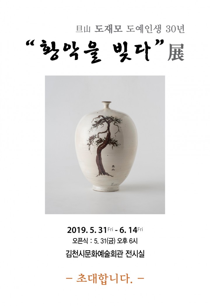 [김천타임뉴스=김이환 기자] 김천시문화예술회관에서는 오는 5월 31일부터 6월 15일까지 15일간 도재모 향토작가를 초청하여 “旦山 도재모 도예인생 30년 – 황악을 빚다"를 테마로 특별기획 전시회를 연다.