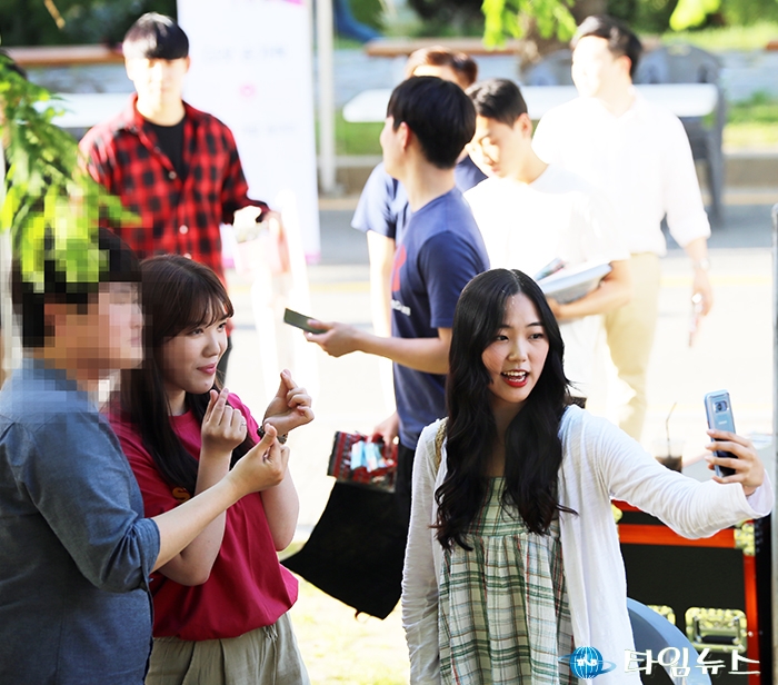 [대전타임뉴스=홍대인 기자] 여성듀오 ‘담소네공방’이 29일 한남대학교 노천극장에서 열린 ‘2019 청춘 드림 톡(talk) 콘서트’에서 공연 이후에 팬들과 셀카를 찍고 있다. 이날 첫 순서로 무대를 장식한 ‘담소네공방’은 ‘배드파파’, ‘아는 와이프’ 등 드라마 OST를 부른 실력파 여성듀오다. 한편 ‘2019 청춘 드림 톡(talk) 콘서트’는 대덕구가 주최하고 한남대가 후원해 지역 청년들의 고민을 함께 나누는 자리로 지속적으로 이어나갈 계획이다.