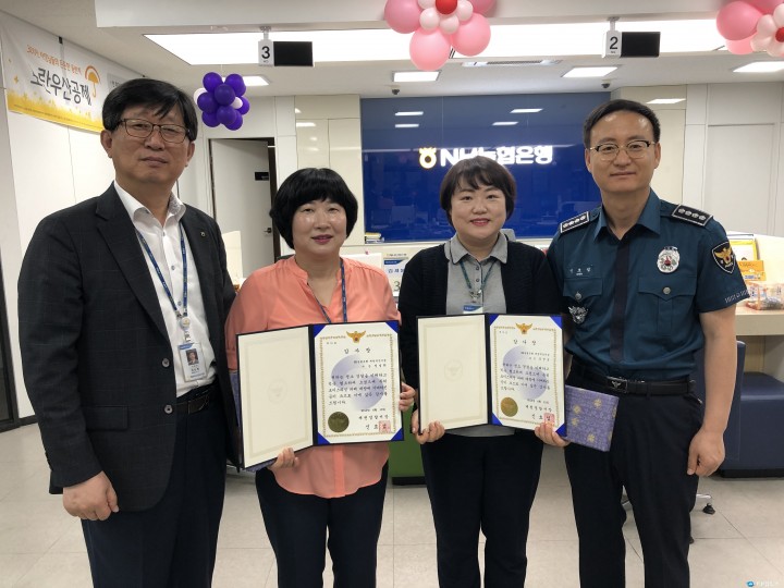 A씨는 곧바로 112로 신고 후 B씨에게 보이스피싱임을 알리고 경찰관이 도착하기 까지 출금을 지연시켜 피해를 예방했다.