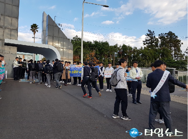 [제주타임뉴스=이수빈기자]제주특별자치도 자치경찰단(단장 고창경)에서는 11월 5일 7시30분부터 8시30분까지 남주중·고등학교 정문에서 등굣길 학생 대상으로‘학교폭력 및 교통사고 예방 합동 캠페인’을 전개했다고 밝혔다.