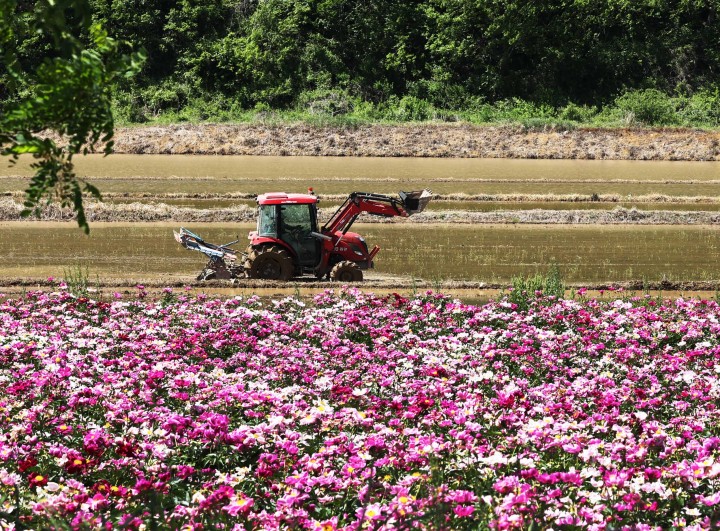 [강진타임뉴스=김금희 기자] 본격적인 농사의 시작을 알린다는 절기 소만(小滿)인 20일 전남 강진군 들판이 쾌청한 날씨 속에 농사준비를 하는 농부의 논갈이가 한창이다.