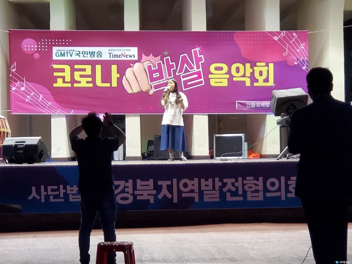 [안동타임뉴스=이태우기자] 지난 7월 25일 안동국제탈춤공연장 본무대에서 코로나19 극복 위한 안동시민 응원 콘서트인 ‘코로나 박살’ 음악회가 열렸다.
