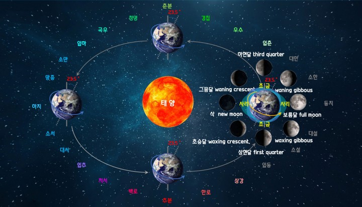 [계절과 물때의 변화를 가져오는 천체운동 모식도 모습].
