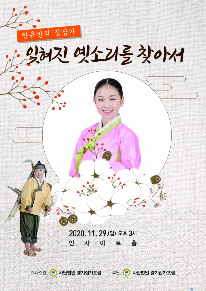 [서울타임뉴스 = 김호심]‘안유빈의 잡잡가 잊힌 옛 소리를 찾아서’ 공연이 오는 11월 29일 (일) 오후 3시 서울 종로구 인사동 인사 아트홀에서 비대면으로 열린다.