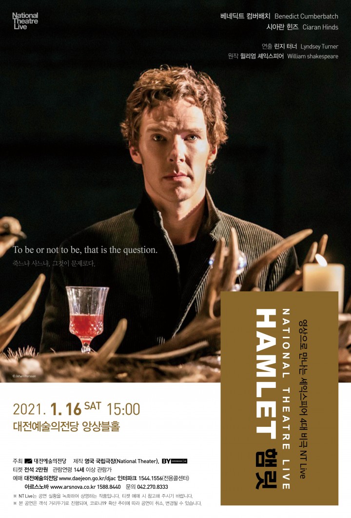 [대전타임뉴스=홍대인 기자] 대전예술의전당은 오는 1월 16일, NT Live [햄릿]을 앙상블홀에서 상영한다. NT Live(National Theatre Live의 약칭)는 영국 국립극장이 연극 화제작을 촬영해 전 세계 공연장과 영화관에 생중계 또는 앙코르 상영하는 프로그램이다.대전예당은 2015년 <리어왕>을 시작으로 <워 호스>, <프랑켄슈타인>을 선보인 바 있다. 이번 작품은 셰익스피어의 [햄릿]으로 <닥터 스트레인지>와 <셜록> 시리즈로 국내에서도 많은 팬을 확보하고 있는 베네딕트 컴버배치(Benedict Cumberbatch) 주연, 런던 연극의 중심지 웨스트엔드의 유명 연출가인 린지 터너(Lyndsey Turner)가 연출을 맡은 2015년 연극계 최고의 화제작이다.초연 당시, 런던 연극 역사상 가장 빠른 매진 기록을 세우고, NT Live 등을 통해 현재까지 전 세계 75만 명의 관객이 관람, 무대와 의상, 소품은 현대적으로 재구성했지만 내러티브의 전개는 원작을 충실히 따르고 있어 ‘지극히 고전적이면서도 현대적이다’라는 평을 받고 있다.컴버배치는 명성에 맞는 연기를 선보인다. 수십 명의 인물이 등장하지만, 그는 극중 내내 섬세한 표정연기로 몰입도를 높이며 독보적인 존재감을 과시한다. 그의 얼굴이 클로즈업 될 때는 극 안에 들어가 있는 듯 넋을 놓고 보게 될 것이다.또한 로열 셰익스피어 극단 <리처드 3세>에서 신들린 연기를 선보인 클로디어스 역의 시아란 힌즈(Ciaran Hinds)가 컴버배치와 맞추는 연기 앙상블도 볼만 하다.올리비에 어워드 연출상에 빛나는 린지 터너의 입체적인 무대와 세련된 색감의 미장센이, 소름끼치는 독백과 명불허전 연기력의 베네딕트 컴버배치와 어우러져 관객을 사로잡는다.작품은 16일 15:00 대전예술의전당 앙상블홀에서 스크린으로 만날 수 있다.자세한 내용은 홈페이지를 참조 바라며, 14세 이상 관람 가능. 기타문의는 042-270-8333으로 하면 된다.