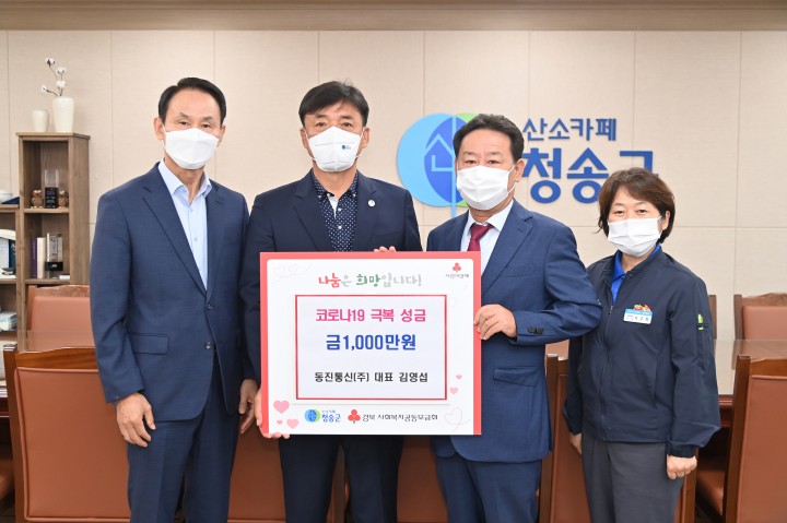 [청송타임뉴스=우진우 기자]청송군은 지난 9월 7일 재구청송군향우회(회장 김영섭)에서 청송군을 방문해 인재육성장학금과 코로나19 극복 성금을 전달했다고 밝혔다.