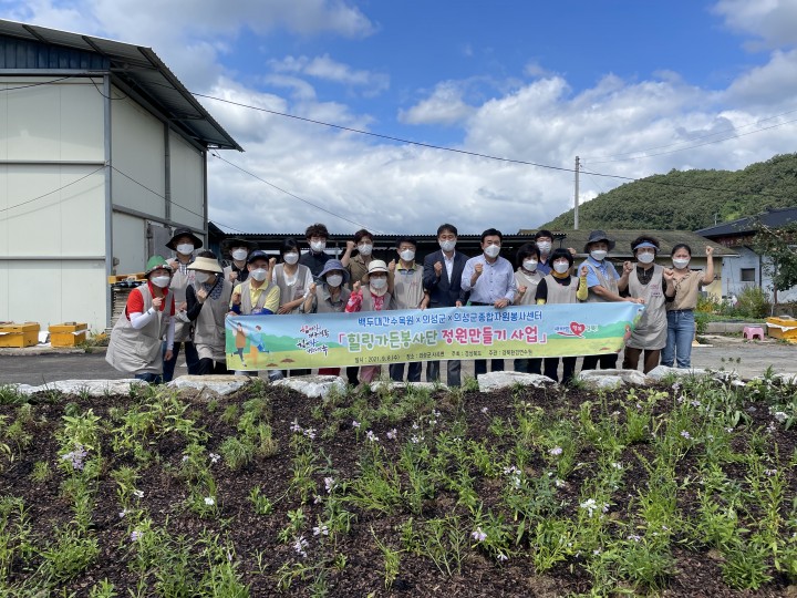 [의성타임뉴스=우진우 기자]의성군과 의성군종합자원봉사센터, 백두대간수목원, 경상북도환경연수원 힐링가든봉사단은 8일 의성 사곡면 양지리를 찾아 마을주민들을 위한 공동체 정원을 조성하였다.