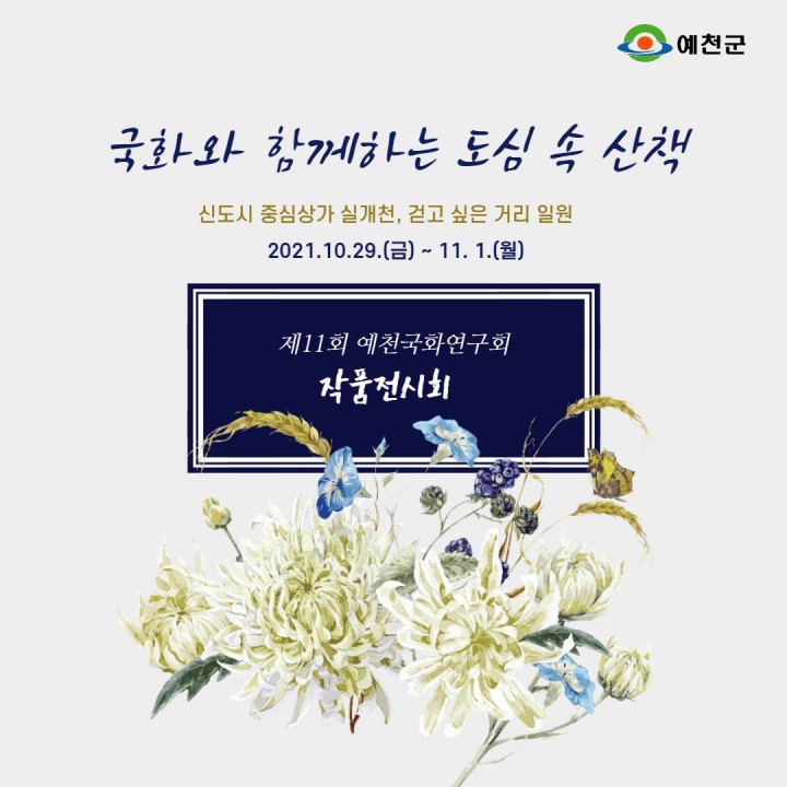 [예천타임뉴스=김용직 기자]예천군은 29일부터 11월 1일까지 호명면 도청신도시 중심상가 실개천에서 ‘제11회 예천국화연구회 작품 전시회’를 개최한다.