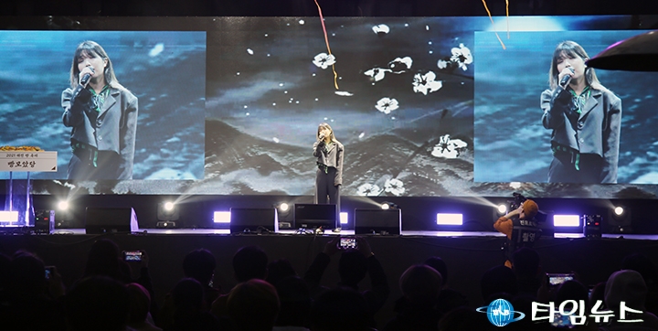 [대전타임뉴스=홍대인 기자] 가수 안예은이 20일 빵을 주제로 대전근현대사전시관 광장(구, 충남도청사)에서 열린 ‘빵 모았堂’ 축제에서 축하공연을 하고 있다.‘빵 모았堂’ 행사는 11월 20일부터 21일까지 대전마케팅공사와 (사)대전상권발전위원회가 주최·주관하며, 34개 대전지역 빵집과 6개의 지역 참여업체가 참여한 가운데 공식행사, 공연행사, 전시·체험행사 등 다채로운 이벤트와 행사가 성대하게 치러지고 있다.전시행사로는 전국에 소문난 빵집들이 직접 만든 빵을 선보이는 ‘빵집 모았당’과 ‘동네빵집 빵지순례’가 준비되어 있다.체험행사로는 우송정보대 학생들의 체험 부스가 진행된다. 캐릭터 쿠키 만들기, 초콜렛 케익만들기 등 참여객들이 직접 제과제빵 체험을 할 수 있는 기회가 제공된다.이번 행사에서는 단계적 일상회복 방역수칙에 따라 취식은 할 수 없으나 입점 업체들이 특유의 빵을 저렴한 가격으로 판매하며, 판매 수익금과 행사종료 시 남은 빵들은 대전시 사회시설에 기부된다.