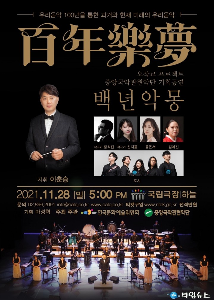 [서울타임뉴스 = 김호심 기자]국내 최초 민간 국악관현악단인 중앙국악관현악단의 ‘백년악몽(百年樂夢)’ 공연이 오는 11월 28일(일) 오후 5시 서울 중구 국립극장 하늘에서 열린다.
