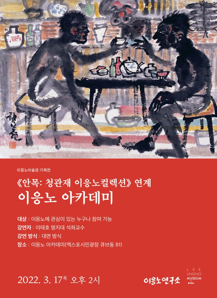 [대전타임뉴스=홍대인 기자] 대전고암미술문화재단 이응노미술관(대표이사 류철하)은 오는 17일 오후 2시 이응노연구소의 주최로 ‘2022 이응노 아카데미’ 프로그램을 개최한다고 밝혔다. 이번 아카데미 프로그램은 현재 이응노미술관에서 진행되고 있는 기획전 《안목: 청관재 이응노 컬렉션》과 연계해 진행되는 행사이다. 이태호 명지대 석좌교수가 강연하는 이번 아카데미는 ‘청관재가 사랑한 고암 이응노’를 주제로 청관재 소장품과 이응노 작품세계에 대한 일반시민들과 전문연구자들의 이해를 높이는 것을 목적으로 한다. 특히 강연자인 이태호 명지대학교 석좌교수는 청관재의 이응노 컬렉션이 이루어지는 모든 과정에 함께한 작품 소장자의 지인으로서, 최근 크게 증가하고 있는 미술작품 수집에 대한 일반인들의 호기심을 충족시키기에도 적절한 자리가 될 것이다. 이응노 아카데미 프로그램은 미술관련 종사자를 비롯하여 일반 시민 누구나 참여 가능하다. 또한 별도의 신청접수 없이 당일 현장 참여 신청방식으로 운영하며 참가비는 무료이다. 류철하 대전고암미술문화재단(이응노미술관) 대표이사는 “2022년 첫 번째 이응노 아카데미 프로그램을 전시와 연계된 다채로운 이야기로 열게 되어 기쁘게 생각한다"며 “이응노 아카데미 프로그램에 많은 관심 부탁드린다"고 밝혔다.