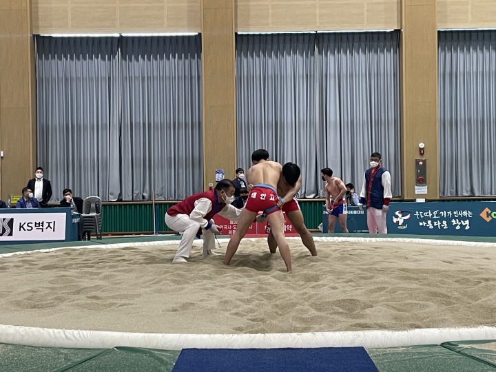 [서산˙태안타임뉴스=임종환기자] 2022시즌을 알리는 첫 대회인 제36회 전국시도대항장사 씨름대회가 4월1일(금)부터 3일(일)까지 3일간 경상남도 창녕군 창녕국민체육센터에서 성황리에 진행되고 있는 가운데, 씨름 명가의 맥을 이어가고 있는 충남 태안고등학교(교장 류재환) 씨름부가 개인전 금메달1개, 은메달2개를 획득하며 22시즌 힘찬 출발을 알렸다.장덕영 부장과 백서혁 감독이 이끄는 태안고등학교는 개인전 경장급 강태수(2학년) 학생이 1위, 청장급 강준수(3학년), 용사급 송수혁(2학년) 학생이 2위에 입상하여 한층 강화된 팀 전력을 바탕으로 2022시즌에 대한 기대감을 더욱 더 높였다.경장급 유망주이자 지난 시즌 마지막 대회인 제18회 학산배전국장사씨름대회에서 2위를 하여 아쉬움을 뒤로 한 강태수 학생은 1위에 올라 한 단계 발전된 기량을 선보이면서 10월에 예정된 제103회 전국체육대회에서 메달 획득을 더욱 더 기대할 수 있게 되었다.