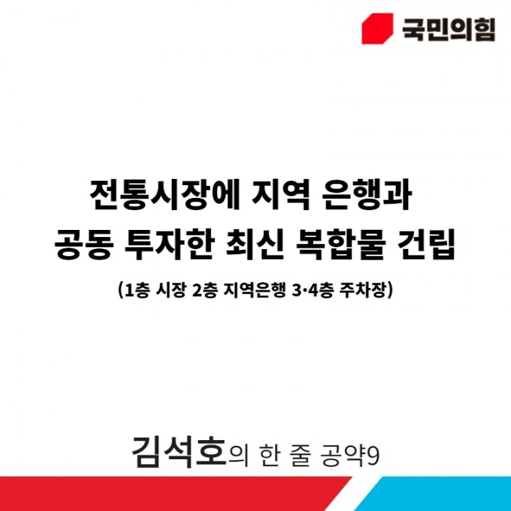[구미타임뉴스=김이환 기자] 김석호 예비후보가 전통시장을 현대화 하기 위한 계획으로 지역 은행과 공동 투자한 최신 복합몰 건립을 공약했다.