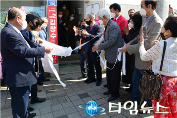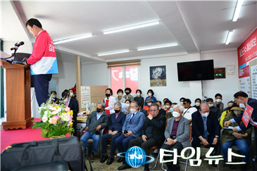 【울진타임뉴스=최경락기자】국민의힘 김창수 울진군수 예비후보는 지난 5일 울진군수 출마 선언 기자회견에 이어 4월 17일 14시 읍내리 국제마트앞 사거리에서 1,000여명의 군민을 모시고 성황리에 선거사무소 개소식을 가졌다.