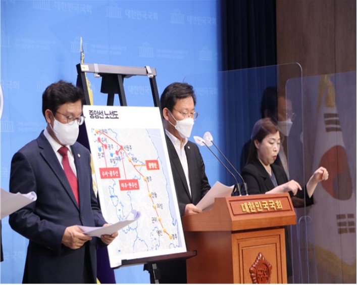 [안동타임뉴스=남재선 기자]국민의힘 김형동(경북 안동·예천) 의원은 중앙선 진화 및 서울역 연장운행을 강력히 촉구했다. 김형동 의원은 20일 경기·강원·충청·경상권 여·야 국회의원들과 함께 기자회견을 열어 수도권 연계 광역급행철도 시대를 위해 공동 대응에 나섰다. 이 자리에서 김형동 의원은 △수도권과 경상권을 잇는 중앙선의 진화, △중앙선의 서울역 연장운행과 강남 수서 연결, △청량리역 승강장 개량 확장공사를 주장했다. 김 의원은 “현재 청량리에서 경주까지 간선철도가 운행 중인데 경북 내륙지역 유일 철도임에도 운행속도가 150㎞/h 에 불과하다"고 지적하면서 “청량리~망우 선로용량 부족 문제 해결에 나서야 한다"고 밝혔다. 실제로 청량리~망우 구간은 중앙선·강릉선이 공동으로 이용하여 KTX, 일반열차, 무궁화호가 혼용돼 열차 지연 주요 요인으로 지목돼왔다. 김 의원은 “현재 청량리역 승강장 개량으로 복합열차 이용이 가능하도록 정부에서 예산 편성이 될 전망인데 열차 운행 효율화를 위해 확장공사가 조기 착수되어야 한다"고 강조했다. 김 의원은 “지방의 소멸 위기를 극복하고 수도권과 경쟁이 가능한 경제권역을 형성하기 위해서는 철도 인프라 구축이 시급하다"면서 “여야가 일치단결하여 지역·수도권이 상생하는 광역급행철도 시대를 여는데 최선을 다 하겠다"고 말했다. 한편, 이날 기자회견은 경기·강원·충청·경상 여·야 국회의원이 손을 맞잡고 수도권 연계 광역급행철도 조기 추진을 위해 중앙선의 서울역 연장운행 및 강남 수서 연결을 비롯하여 GTX-A 노선의 수서-광주 연결접속부 설치, GTX-B 조기착공과 춘천 연장 등을 촉구했다.