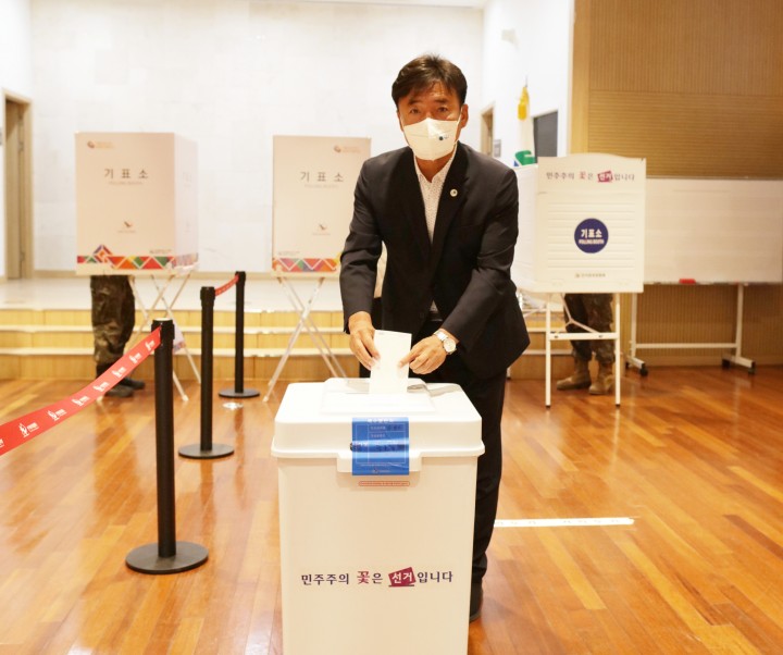 [청송타임뉴스=남재선 기자]5월 27일 사전투표 첫날 윤경희 청송군수후보는 청송읍 사전투표장인 청송문화예술회관 소공연장을 찾아 부인 김옥자씨와 함께 투표를 하였다.