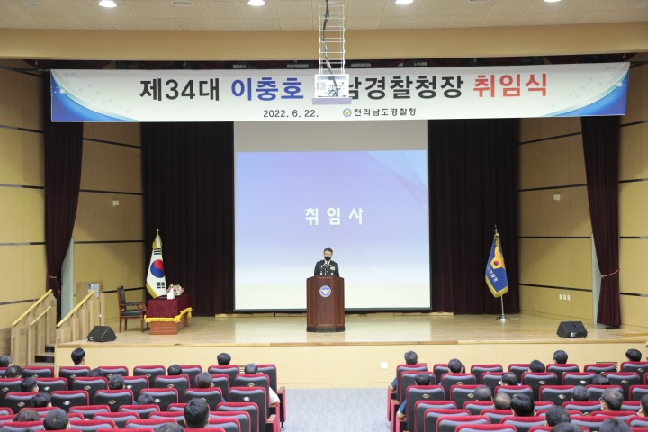 [전남타임뉴스=오현미 기자] 전남경찰청은 22일 1층 남악홀에서 전남경찰 지휘부가 참석한 가운데 ‘제34대 이충호 전라남도경찰청장 취임식’을 가졌다.