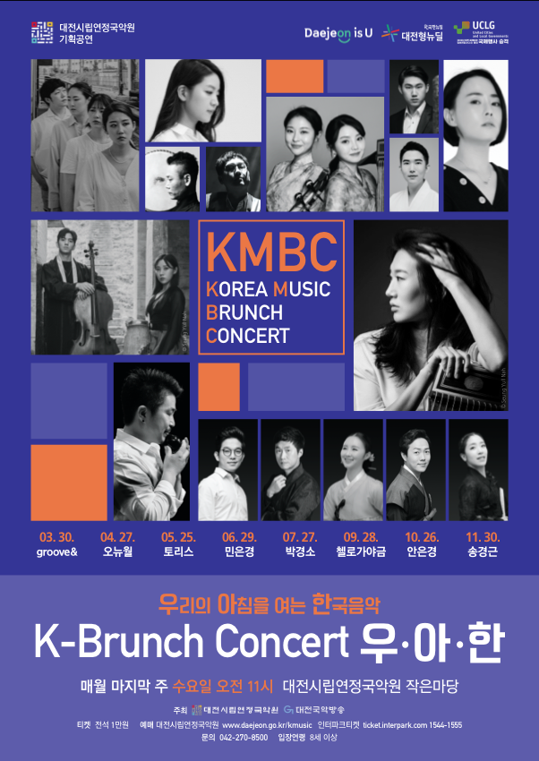 [대전타임뉴스=홍대인 기자] 대전시립연정국악원(이하 국악원)은 2022 시리즈 기획 K-브런치 콘서트‘우·아·한(우리의 아침을 여는 한국음악)’네 번째 무대를 6월 29일(수) 11시에 국악원 작은마당에서 개최한다고 밝혔다. K-브런치콘서트 <우·아·한>은 대전국악방송과 공동으로 지역의 전통음악 인프라 확충과 국악의 대중화, 생활화를 위해 국내외에서 활발하게 활동하고 있는 연주자들이 국악 중심의 한국창작음악으로 클래식, 재즈 등 장르의 경계를 허물며 특별한 공연을 만들고 있다. 지난 3월 여성 타악앙상블‘그루브앤드’를 시작으로 4월 국악 어쿠스틱 듀오‘오뉴월’, 5월은‘토리스’가 우리가 알고 있는 아카펠라를 뛰어넘는 K-국악 아카펠라를 들려줬다. 6월의 주인공 소리꾼 민은경은 아담하고 작은 체구의 여린소녀 이미지를 갖고 있지만 무대에서 내뿜는 강한 카리스마 때문에 국립창극단의‘작은 거인’으로 불리 운다. 창극‘아비, 방연’의 단종,‘화선 김홍도’속 소년 홍도, 마당놀이‘심청이 온다’심청, 다른춘향의‘춘향’,‘귀토’의 토녀, 뮤지컬‘서편제’등 왕성한 활동을 하고 있다. 그리고 2017년에는 판소리 완창 공연, 음반, 방송, 유튜브, 학교 강의 등 다방면으로 활동하고 있다. 판소리 하기 전 목을 푸는 짧은소리를‘단가’라 하는데‘단가’ 중‘사철가’를 보다 편하게 들을 수 있도록 많은 작곡가들과 전통적이면서도 현대적으로 재해석하여 편곡한‘분명코, 봄’을 시작 으로 소박한 사랑을 노래한 제주민요‘너영나영’이 이어간다. 그 밖에 뮤지컬 수록곡, 드라마 OST, 판소리, 민요 등의 다양한 장르가 피아노, 퍼커션이 국악선율과 함께 멋진 무대를 펼친다. 대전시립연정국악원 이영일 원장은“국악원에서 준비한 우리의 아침을 여는 한국음악으로 더운 날씨를 잠시 잊게 해주는 시원한 단비 같은 공연이 되길 바라며, 앞으로도 많은 관심과 성원을 부탁드린다"고 말했다. 공연 입장료는 전석 1만원으로 진행되며, 예매는 대전시립연정국악원(www.daejeon.go.kr/kmusic), 인터파크(ticket.interpark.com)에서 가능하다. 제세한 내용은 홈페이지 또는 공연문의(042-270-8500)으로 하면 된다.