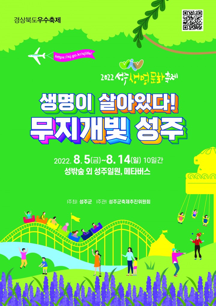 [성주타임뉴스=김민규 기자] 2022 성주생명문화축제가 생명의 기운이 충만한 뜨거운 여름 시원한 축제로 돌아왔다. 오는 8월 5일부터 14일까지 열흘간 성밖숲과 역사테마공원 등 성주군 일원에서 개최되며, ‘생명이 살아있다! 무지개빛 성주’라는 슬로건을 내걸고 7가지 무지개색을 테마로 다채로운 프로그램으로 구성된다.