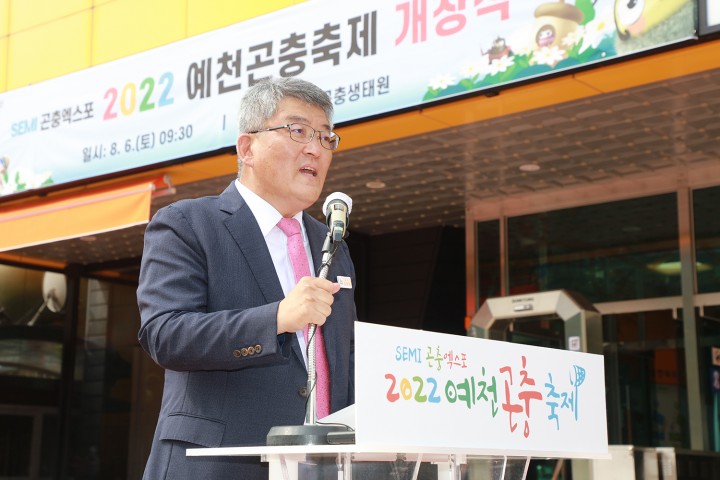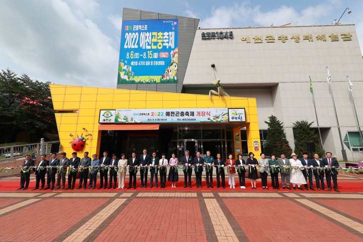 이날 개장식에는 (재)예천문화관광재단 이사장인 김학동 예천군수를 비롯한 최병욱 예천군의회 의장, 관내 기관단체장, 예천군민, 관람객 등 100여 명이 참석해 축제 성공 개최를 기원했다. ‘살아있는 곤충 세상 속으로!’라는 주제로 진행되는 이번 행사는 김학동 군수의 환영사와 최병욱 의장 축사에 이어 개장식 하이라이트인 ‘테이프 커팅 세레모니’가 진행됐으며 이어 특별 이벤트로 첫 번째 관람객 환영 행사를 진행한 후 행사장 투어를 끝으로 모든 개장식 일정이 마무리 됐다. 한편, 곤충에 관한 모든 콘텐츠가 총 망라된 체험과 축제의 장인 ‘SEMI 곤충엑스포 2022 예천곤충축제’는 6일부터 15일까지 10일간 예천읍 시가지 및 곤충생태원 일원에서 개최된다.
