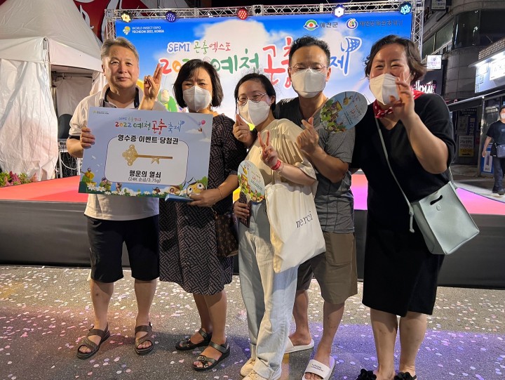 ‘살아 있는 곤충 세상 속으로!’를 주제로 오는 15일까지 열리는 축제기간 동안 매일 밤 한천체육공원에 위치한 메인 무대에서는 다양한 부대공연이 마련되어있다. 제7회 예천전국가요제, 평양예술단, 낙동7경, 치맥 페스티벌, 라온 음악나들이, 제3회 예천국악제, 제9회 예천아리랑축제, 우리가락 우리마당 공연부터 청소년댄스 경연 대회, 영화상영, 어린이 뮤지컬 아빠캠핑가요 등 다양한 세대가 함께 즐길 수 있는 프로그램과 휴일에만 즐길 수 있는 음악분수, 화려한 불꽃쇼가 기다리고 있다. 또한, 한천의 분수 아래를 지나가는 예천군 해병대 전우회의 보트체험을 운영해 무더운 여름에 시원한 추억을 선사한다. 한천 위에 전시된 유등과 시가지 곳곳에 있는 곤충유등, 레인보우 우산으로 꾸며진 예천읍 시가지 야간 경관도 추억할 만한 멋진 여름의 한 장면을 연출하고 어린이집 연합회에서 주관한 소원등 공모전 출품작들도 행사 기간 동안 전시되면서 야간 경관을 더욱 빛내주고 있다. 특히, 축제 기간에는 놓치기엔 너무 아까운 이벤트들이 준비 되어있다. 벅스 스탬프 챌린지는 축제 티켓 구매자에 한해서 7가지 포인트 방문 후 인증사진을 남기면 스탬프를 찍어주고 현장에서 즉석 뽑기를 통해 경품 추첨으로 1등 예천한우세트(1.2kg), 2등 예천 벌꿀세트 등 6등까지 선물을 증정한다. 영수증 이벤트는 예천읍 시가지 내 점포에서 예천사랑쿠폰 금액을 제외하고 3만 원 이상 구입하면 누구나 영수증을 이벤트 응모권으로 교환할 수 있다. 매일 오후 8시 30분 시가지 소무대에서 당첨자를 추첨해 1등에게 금으로 된 행운의 열쇠(3.75g)를 2등 에게는 예천한우세트 등 1일 5종 푸짐한 경품을 제공한다. 한편, SEMI 곤충엑스포 2022 예천곤충축제는 개막 첫날인 6일 3만5천명이 넘는 관람객들이 행사장을 방문해 흥행 대박을 예고했으며 13일부터 14일까지 개최되는 ‘제9회 예천 용궁순대축제’와 15일 광복절 연휴와 여름 방학, 휴가 등을 맞아 더 많은 관람객들이 축제장을 찾을 것으로 기대된다.