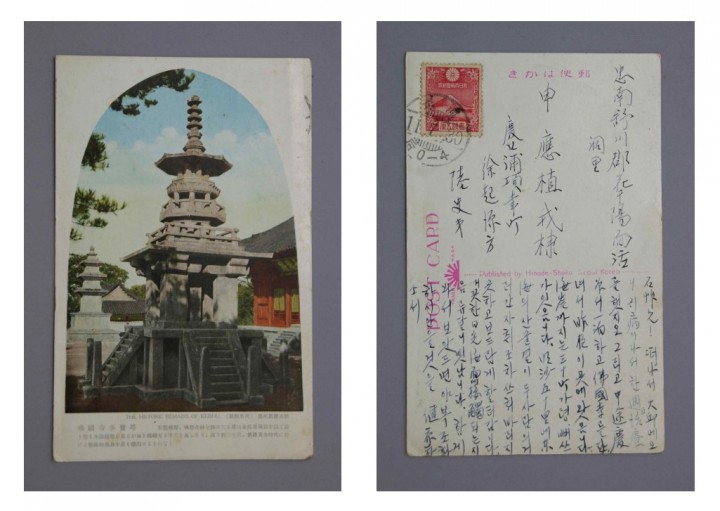 두 번째 엽서는 이육사가 자신과 막역했던 시인 ‘신석초(申石艸, 본명 신응식 申應植)’에게 보낸 것이다. 소인 날짜는 1936년 7월 30일이다. 발신지인 ‘포항 행정(浦項 幸町)’은 오늘날 ‘포항시 북구 중앙로 일대’이며, 이육사의 친구인 ‘서기원(徐起源)’의 집이 있는 곳이다. 엽서의 내용은 대구와 경주를 거쳐 포항에 이른 자신의 여행 경로와 몸의 상태, 그리고 친구 신석초에 대한 우정을 담고 있다. 또한, 신석초를 ‘아체(我棣)’로 표현한 것은 그를 형제처럼 여겼음을 짐작하게 한다. 이육사의 교류 관계와 건강상태, 그리고 다른 문학 작품과의 관계 등을 살필 수 있는 귀중한 자료이다.