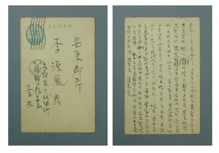 첫 번째 엽서는 안동 군청에 근무한 친척 이원봉(李源鳳)에게 보낸 것이다. 소인 날짜는 1931년 11월 10일이다. 당시 이육사는 ‘대구 동천대전정(大邱 東千代田町)(현재 대구광역시 중구 동일동 일대)’에 소재한 조선일보사 대구지국 기자로 근무할 당시에 작성한 것이다. 엽서 내용은 고향 안동을 다녀온 직후 안동에서 친척을 대면한 반가움과 그와 헤어진 뒤의 아쉬움을 절절하게 드러내어 친족에 대한 이육사의 애정과 함께 자신의 직업과 일상생활에 대한 인식을 엿볼 수 있는 귀중한 자료이다.