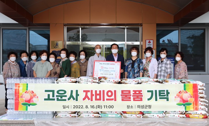 [의성타임뉴스=이단비 기자]의성군은 8월 16일 고운사 신도회(회장법명 도해)에서 관내 어려운 이웃들의 급식을 위한 쌀(10kg) 200포, 생수 1,000병을 기부했다고 밝혔다.