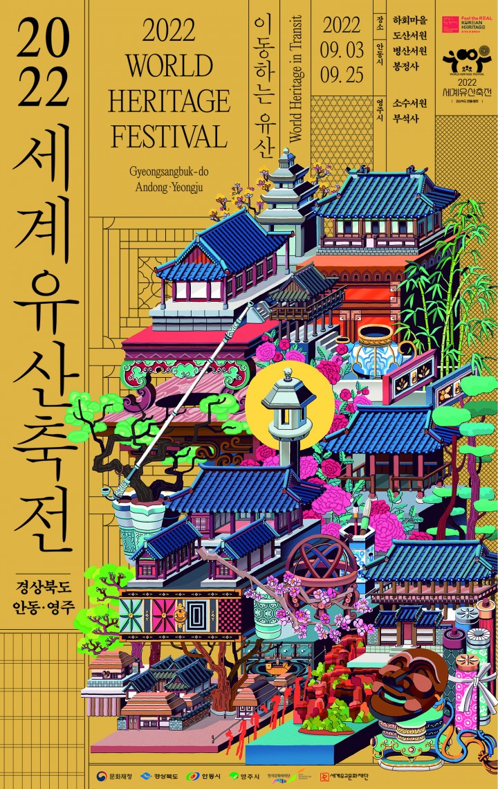 문화재청, 경상북도, 안동시, 영주시가 주최하고 한국문화재재단과 (재)세계유교문화재단이 주관하는 이번 세계유산축전은 ‘이동하는 유산(World Heritage In Transit)’을 주제로 안동시(하회마을, 병산서원, 도산서원, 봉정사)와 영주시(소수서원, 부석사) 세계유산 총 6곳에서 열린다. 9월 3일 영주 부석사에서 ‘세계유산 국제콘퍼런스’를 시작으로, 하회마을에서‘나는 유교다:더 레알 유교’개막공연으로 축전의 서막을 알린다.안동시는 세계유산축전이 처음 시작된 2020년부터 올해까지 3회 연속 개최하는 만큼 특별하고 수준 높은 프로그램으로 관람객을 맞이할 계획이다. 유네스코 세계유산을 찾는 관람객들에게 세계유산의 가치와 의미를 공연, 체험, 전시 등 다양한 콘텐츠로 선보일 예정이다.안동 하회마을에서는 △건축가 승효상이 설계한 ‘세계유산축전 주제관’에서 국내 유수의 예술가들이 참여하는 전시회가 열려 세계유산의 가치와 의미를 알린다. △하회탈 탄생 설화를 기반으로 한 플라잉쇼‘나는 유교다:더 레알 유교’와 선비들의 풍류 문화였던‘선유줄불놀이’가 만송정과 부용대에서 펼쳐진다. △하회마을 내 유휴고택에서는 ‘HIA 국제 유산 미술제’가 마련돼 고택과 주변 환경을 활용한 컨템포러리 아트를 관람할 수 있다. 병산서원에서는 △서애 류성룡 선생의 일대기를 음악극으로 풀어낸 ‘풍류병산: 향의 노래’와 △체험프로그램 ‘병산서원에서의 3일’, △병산서원과 하회마을을 잇는 구곡길 트래킹(걷기여행) 프로그램인 ‘구곡길 라디엔티어링’이 준비되어 있다. 도산서원에서는 △도산서당 실내 미디어아트, △서원 당시 모습을 재현하는 주제극 등 다채롭고 아름다운 조명과 함께하는‘도산서원 야간개장’이 진행된다.안동과 영주의 세계유산 6곳에서 디지털 AR(증강현실)을 활용해 스마트폰으로 참여할 수 있는 ‘유산 탐정 AR’을 선보인다. 또한, 축전 기간 매주 주말마다 세계유산을 거닐며 유산과 더불어 살아가는 사람들의 이야기를 들을 수 있는 ‘나의 세계유산 답사기’도 진행된다.