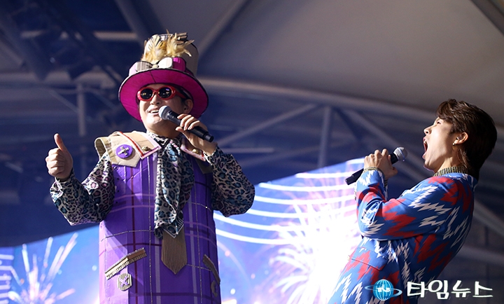 [대전타임뉴스=홍대인 기자] 그룹 노라조가 대전 중구 대흥동 우리들공원에서 열린 ‘대전 0시 뮤직페스티벌’ 2일차인 8일 공연을 하고 있다.‘대전 0시 뮤직페스티벌’은 7일부터 10일까지 은행동·대흥동 일원 원도심에서 지역경제에 활력을 불어넣고 관광도시로의 재도약을 위해 개최됐다.이번 행사는 내년 8월 개최 예정인 ‘대전 0시 축제’의 맛보기 행사로, 뮤직페스티벌·버스킹·길거리 공연·뉴트로거리·먹거리존 등의 다양한 볼거리와 먹거리 프로그램 등으로 진행된다.뮤직페스티벌은 대흥동 우리들공원에서 4일간 진행되며, 청하·소찬휘·다이나믹듀오·김희재 등 국내 최정상급 가수를 초청해, K-pop·뉴트로·힙합·트로트 등 4일 4색의 가을밤 음악 향연을 펼치게 된다.또한 지역 문화예술인들이 출연하는 버스킹과, 마술·판토마임·버블쇼 등의 길거리 공연이 행사장 곳곳에서 관객들과 호흡할 예정이다.
