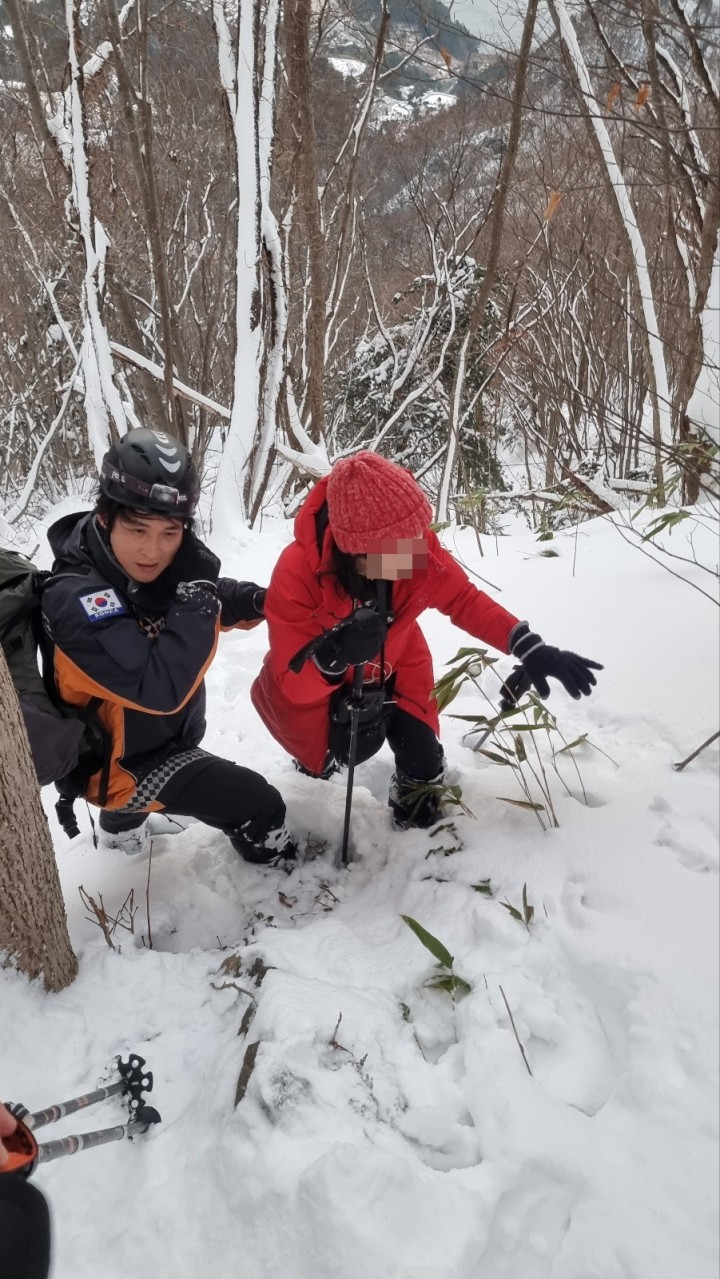 울릉도 성인봉(해발 987m) 안평전 구간 눈속에 파묻힌 등산객 구조