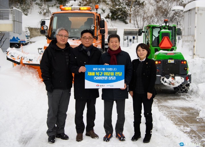 특히 25일 하루 적설량 75.6cm 기록하는 등 폭설로 며칠째 주야간 제설작업이 이어지자 이강덕 포항시장은 “폭설로 고통 받는 울릉군 주민들에게 위로의 말과 함께 하루빨리 군민들이 어려움을 극복하기를 바란다."며 재해복구 위문품(500만원 상당)을 전달하였다. 남한권 울릉군수는 “우호도시인 포항시의 위문품 전달에 감사하고, 제설작업에 고생이 많은 봉사자에게 큰 힘이 될 것이"이라며 “앞으로도 두 지역간의 우호관계 강화를 위해 지속적으로 협력해 나가겠다.“고 말했다. 한편, 울릉군은 상생협력 발전의 일환으로 지난해 태풍 힌남노로 포항시가 큰 피해를 입었을 때 공무원들이 자발적으로 모금한 성금을 전달하고 피해 복구를 위한 장비와 인력을 지원하였으며, 포항시는 매년 울릉군민의 날 및 오징어 축제에 방문단을 보내는 등 상호 우호 관계 강화와 협력 발전을 위해 지속적으로 교류해 나가고 있다.