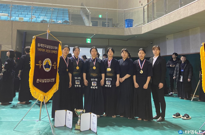 [경주타임뉴스=전찬익기자] 경주시청 직장운동경기부 여자검도팀(감독 박연정)이 ‘2023년 동계 전국실업검도대회’에 출전해 3인조 단체전 우승과 개인전 3위를 각각 차지했다. 이번 대회은 한국실업검도연맹 주관으로 이달 4일부터 7일까지 전북 남원 춘향골체육관에서 개최됐다.단체전은 결승에서 상대팀 탑솔라(광주)을 만나 선봉(차민지 1:1), 중견(최주원 0:0), 주장(한하늘 0:0)이 출전해 3무승부를 기록했지만 대표전에서 한하늘 선수가 손목치기로 최종 우승을 차지했다.그리고 개인전에서는 최주원 선수가 3위에 입상했다. 박연정 감독은 “올해 첫 대회에서 좋은 성적을 낼 수 있도록 선수 증원 등 많은 도움을 준 경주시와 경주시체육회에 감사의 인사를 드린다"라며 “앞으로 올 시즌 좋은 성과를 거둘 수 있도록 선수들과 함께 최선의 노력하겠다"고 말했다.여준기 경주시체육회장은 “올해 첫 출전대회에서 우승을 달성한 우리 선수들의 노고에 감사의 말을 전한다"며 “전문체육 선수의 경기력 향상을 통한 지역체육 발전의 기틀을 만들 수 있도록 최선을 다하겠다."고 전했다.