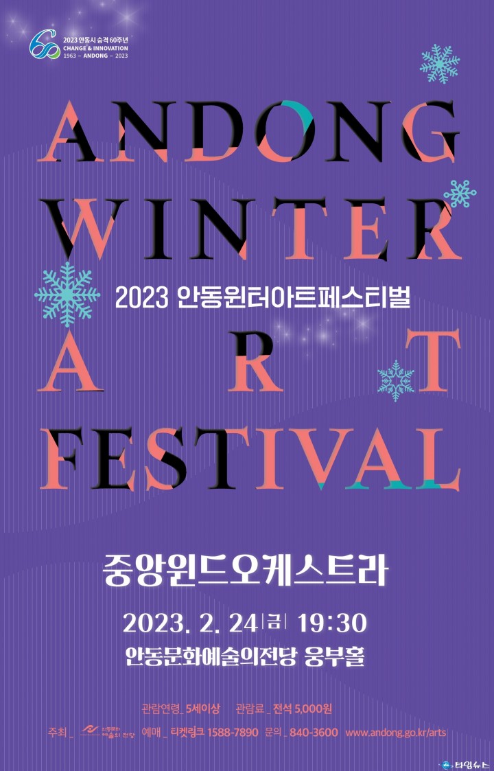 중앙윈드오케스트라는 안동지역에서 클래식 관악기를 전공한 전문 관악예술단체이다. 화려하고 웅장한 관악기의 특유한 울림으로 지역민들의 클래식 문화향유에 기여하고자 노력해왔다. 이번 공연에는 악기 내부의 관을 진동시켜 소리를 내는 목관악기, 금관악기의 섬세하고 화려한 멜로디와 웅장하고 파워풀한 관악기를 바람에 비유하여 화려한 바람소리, 아름다운 바람소리, 즐거운 바람소리 세가지 프로그램으로 진행한다. 또한, 관악기 클래식을 어렵게 느끼지 않도록 세미 클래식, 대중가요. 영화음악 등의 다양한 프로그램으로 구성했다. 플루트, 오보에, 튜바, 클라리넷, 트럼본 등 다양한 종류의 금관 및 목관악기를 한자리에서 관람할 수 있는 좋은 기회가 될 것으로 기대되고 있다. 2023년 안동윈터아트페스티벌‘중앙윈드오케스트라와 함께하는 윈윈콘서트’의 관람료는 전석 5,000원으로 5세 이상 관람이 가능하다. 자세한 사항은 전화(☎054-840-3600)로 문의하거나 안동문화예술의전당 홈페이지(http://www.andong.go.kr/arts)에서 확인할 수 있다.