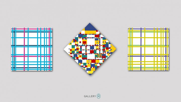 이번 작품들은 다양한 원색컬러 사용하고 색채에 규칙을 적용해 시선을 고정하게 만들어 편안함과 역동적인 느낌을 선사한다.