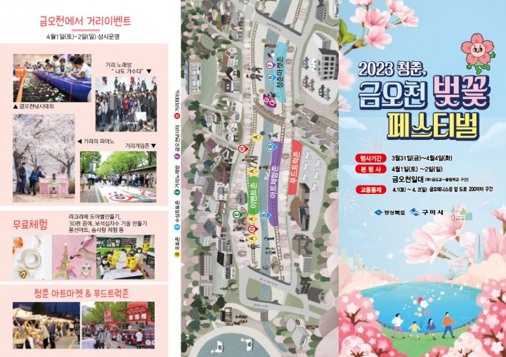 [구미타임뉴스=김이환 기자] 구미시(시장 김장호)는 금오산도립공원 내 금오천 일원에서 3월 31일부터 4월 4일까지 5일간 숨협동조합(대표 김영권) 주관으로 2023 청춘, 금오천 벚꽃 페스티벌을 개최한다.