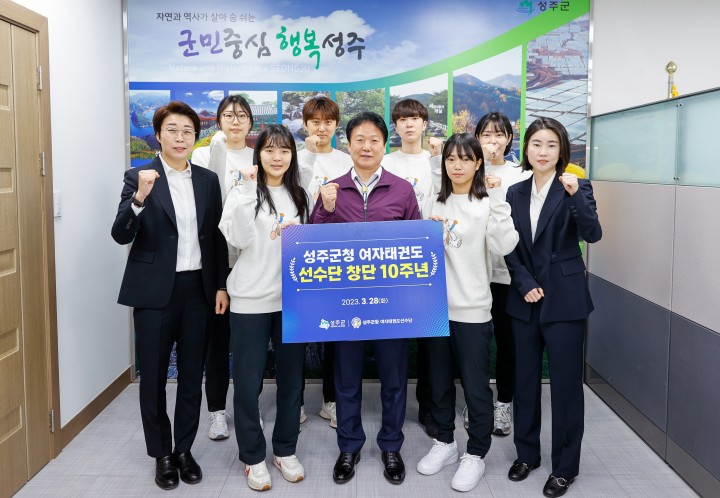 [성주타임뉴스=김이환 기자] 성주군청 여자태권도선수단(이하 선수단)은 2013년 3월 28일 창단하여 10주년을 맞이했다. 선수 4명으로 시작했던 성주군청팀은 선수 2명을 충원하여 현재는 박은희 감독을 비롯해 도해경 코치, 선수 6명으로 구성되어 매년 좋은 성적을 거두며 든든한 효자종목으로 자리매김하며 성주군의 위상을 더 높여주고 있다.