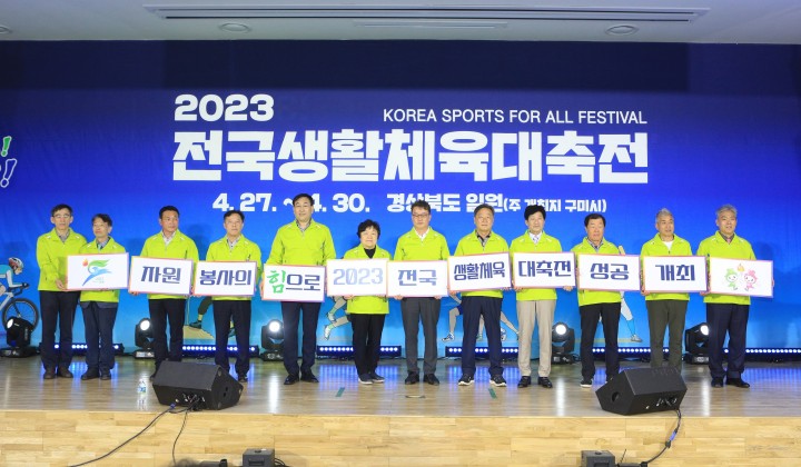 2023 전국생활체육대축전 자원봉사자는 4월 27일부터 30일까지 4일간 경기장 개‧폐회식 행사지원, 경기장 안내, 경기 운영지원, 선수단 환영, 질서 유지 등 다양한 분야에서 활동한다. 김호섭 구미부시장은 지난해 울진 산불 및 포항 힌남노 태풍 복구 등 자원봉사자들의 노고를 격려하며“자원봉사자의 열정은 선수단 및 방문객들에게 희망, 기쁨, 감동을 선사해 성공적인 대축전의 원천이 될 것이며 2024년 제62회 경북도민체전, 2025년 아시아육상경기선수권대회에도 자원봉사자분들의 적극적인 참여와 협조를 당부한다"라고 했다. 4년 만에 정상 개최되는 2023 전국생활체육대축전은 4월 27일부터 30일까지 구미시민운동장을 비롯한 11개 시‧군 54개 경기장에서 개최되며, 17개 시‧도 선수, 임원, 관람객 등 6만여 명이 43개 종목에 참가하게 된다.