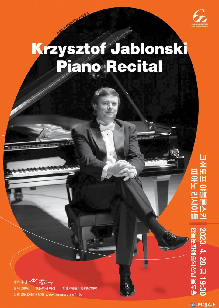 안동문화예술의전당 기획공연‘피아니스트 크쉬토프 야블론스키 리사이틀’ 관람료는 전석 2만 원이며 초등학생 이상 관람이 가능하다.
