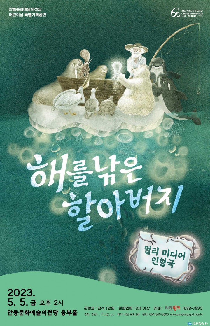 이번 공연은 김정미 작가의 그림동화‘해를 낚은 할아버지’를 독특한 상상력을 기반으로 재창작한 작품이다. 따뜻하고 섬세한 이야기와 친근한 인형 캐릭터들이 함께하며, 미디어파사드와 프로젝션 맵핑 영상기술을 활용하여 포근한 무대를 표현한다.낚시를 잘하는 할아버지가 실수로 해를 낚아버리면서 벌어지는 위기에 맞서 할아버지와 동물 인형들이 이를 슬기롭게 해결해가는 이야기로 ‘해와 달이 사라진 세상’이라는 상상력을 바탕으로 위기 상황 속에서도 무엇이든 함께하면 극복할 수 있다는 메시지를 어린이들에게 전달하고자 한다. 환상적이고 섬세한 수채화 색감의 무대 표현과 이야기의 흐름을 이끄는 감성적 음악 그리고 숙련된 전문 인형사들이 조종하는 동물 인형들이 객석을 오가며 어린이들과 소통하고자 무대를 객석으로 확장해 공연의 즐거움을 더한다.안동문화예술의전당 어린이날 특별기획‘멀티미디어 인형극 해를 낚은 할아버지’는 혼자 해결하려면 힘들고 어려운 일도 모두 마음을 함께하면 위기를 극복해 나갈 수 있는‘함께의 힘’을 어린이들에게 전달한다. ‘멀티미디어 인형극 해를 낚은 할아버지’관람료는 전석 1만 원으로 3세 이상 관람이 가능하다. 자세한 사항은 전화(☎054-840-3600)로 문의하거나 안동문화예술의전당 홈페이지(http://www.andong.go.kr/arts)에서 확인할 수 있다.