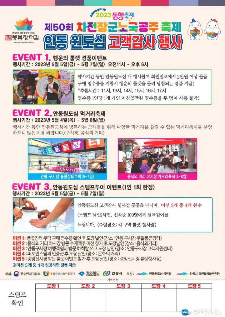 [안동타임뉴스=남재선 기자]안동시는 ‘차전장군 노국공주 축제’와 연계하여 중앙신시장과 원도심 일대에서 고객 감사 이벤트를 개최한다.