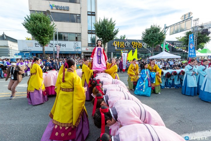 [안동타임뉴스=남재선 기자]제50회 차전장군 노국공주 축제를 대표하는 민속 콘텐츠인 차전놀이와 놋다리밟기 정기공연이 오는 6일과 7일 모디684 앞 대로에서 펼쳐진다. 먼저, 5월 6일(토) 오후 3시에 안동차전놀이가, 이튿날인 7일(일) 오후 3시에는 안동놋다리밟기 정기발표공연이 개최된다.이번 공연은 문화재청, 경상북도, 안동시가 주최하고 안동차전놀이보존회와 안동놋다리밟기보존회가 주관한다. 안동차전놀이는 1,000여년의 역사를 자랑하는 후삼국시대(930년)에 고을의 삼태사(김선평, 권행, 장길)가 고창(안동의 옛지명)의 병산에서 치열한 전투가 벌어졌을 때 고려의 왕건을 도와 후백제의 견훤이 이끄는 군대를 물리치고 승리함으로써 고려가 후삼국 통일의 기틀을 마련하게 된 것을 기념하기 위하여 전승되는 우리나라의 대표적 대동놀이이다. 안동차전놀이는 대단위 인원이 집단적으로 민첩하게 움직여 단결과 협동성, 일사분란한 행동 통일을 이뤄 웅장함과 역동성을 자아낸다.
