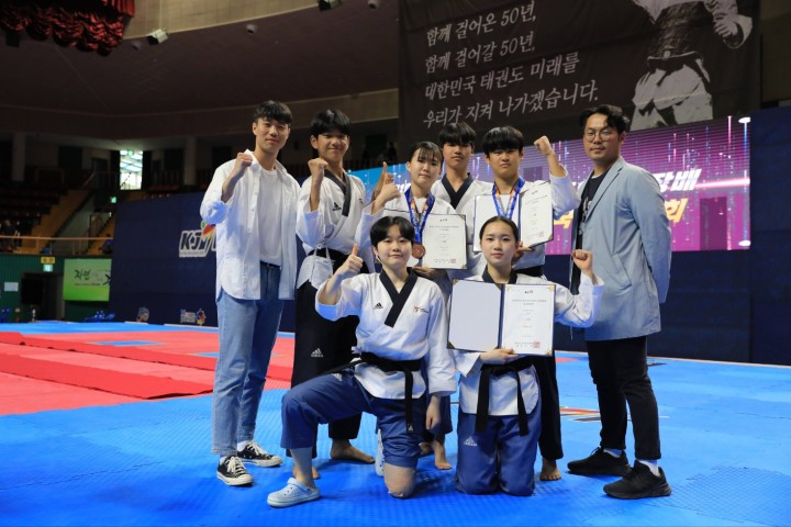 [구례타임뉴스=오현미 기자] 전남 구례군 실내체육관에서 지난 4월 22부터 2일까지 열린 제50회 한국중‧고등학교태권도연맹회장기 전국태권도대회 및 제19회 한국중‧고등학교태권도연맹 회장배 전국품새대회가 성료됐다.한국중‧고등학교태권도연맹이 주최하고 구례군 체육회가 주관하는 이번 대회는 품새 635명, 겨루기 1923명의 중‧고등부 선수들이 참가한 가운데 그동안 갈고닦은 기량을 맘껏 발휘하며 뜨거운 승부를 펼쳤다.품새는 개인전, 단체전, 복식전에서, 겨루기는 총 11체급에서 값진 메달을 수확한 선수들이 함께 기쁨을 나눴다.구례군 관계자는 “오랜 전통과 역사를 지닌 전국 태권도 대회에 전국에서 많은 선수들이 참가했다"며, “선수단과 가족들이 구례에 머물며 숙박시설, 식당 등을 이용함으로써 지역에 활기를 불러일으켰고 지역경제 활성화에도 큰 기여를 했다"고 말했다.김순호 구례군수는 “이번 대회를 성황리에 마무리할 수 있도록 협조해 주신 선수, 가족, 대회 관계자에게 감사드리며, 천혜의 자연환경을 지닌 명품 관광도시 구례를 다시 찾아 주길 바란다"고 말했다.