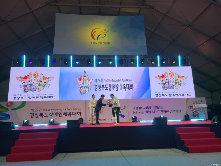 [울진타임뉴스=남재선 기자]울진군(군수 손병복)에서 지난 2일부터 열린 제25회 경상북도장애인체육대회가 3일 폐회식을 끝으로 2일간의 대회를 성황리에 마무리했다. 이번 폐회식은 대회 운영결과 발표, 대회 하이라이트 영상 상영, 종합시상, 다음 개최지인 구미시로 대회기 전달 등으로 진행되었으며, 지난 1일 망양정 해맞이공원에서 채화된 장애인들의 열정과 희망으로 타오르던 성화 소화를 끝으로 대회 종료를 알렸다.